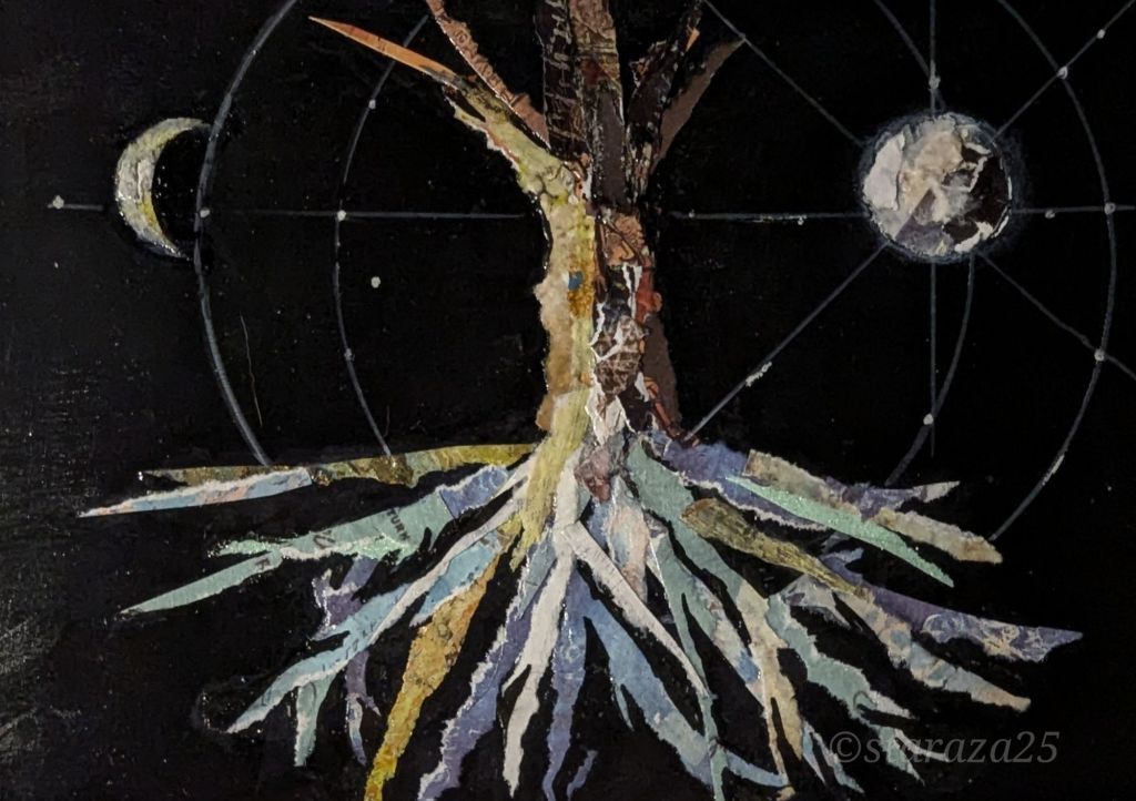 Medium: handmade gel plate printed papers and other papers on mat board: 5×7″ inches
