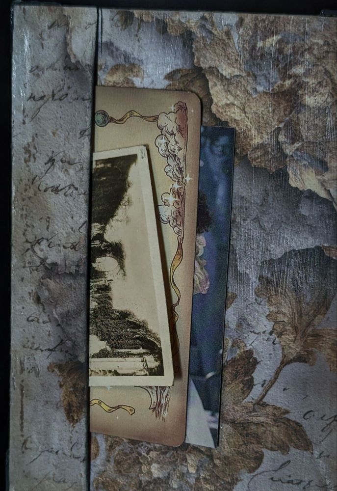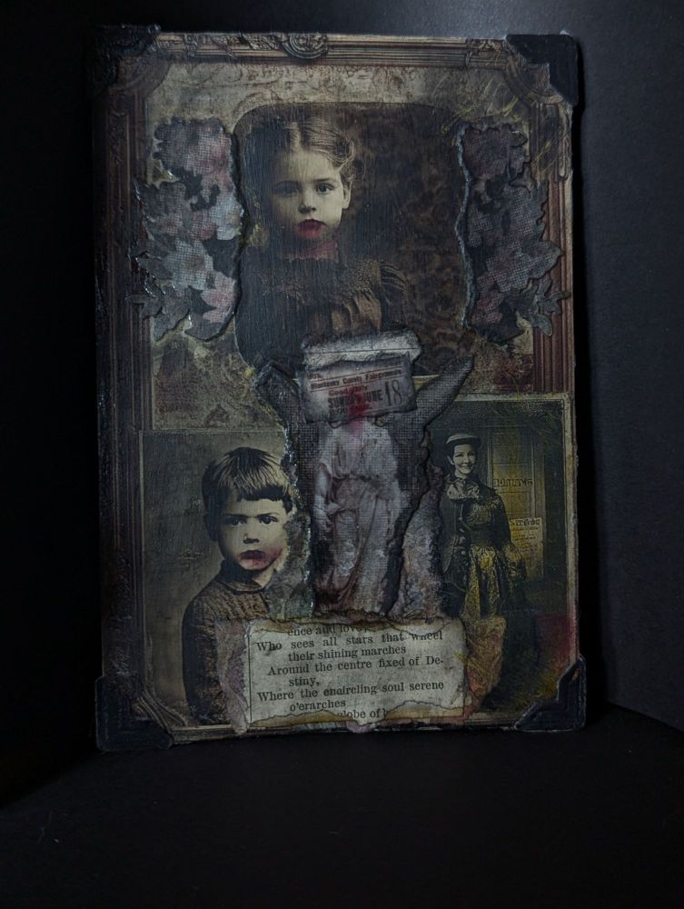 About: a mixed media artist altered postcard. 4×6 inches.